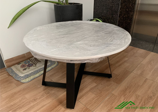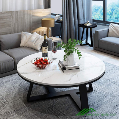 Bàn trà sofa mặt đá hình tròn đẹp được làm từ loại khung sắt được phủ lớp sơn chống xước cho sản phẩm. Ngoài ra loại bàn này còn có mặt đá hình tròn màu trắng dày cao cấp.
