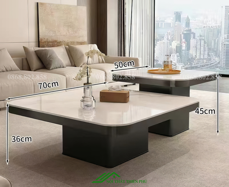 Bàn trà hình vuông mặt đá - BT 92 với kích thước phù hợp