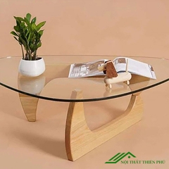 Bàn trà sofa chân gỗ Noguchi mặt kính