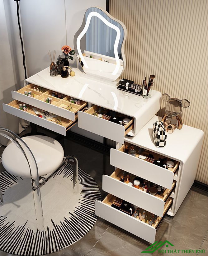 Nếu bạn đang tìm kiếm một chiếc bàn trang điểm vừa hiện đại, vừa tiện dụng, thì Nội Thất Thiên Phú chính là điểm đến lý tưởng. Với sự đa dạng về mẫu mã, chất liệu cao cấp và thiết kế tinh tế, sản phẩm bàn trang điểm tại Nội Thất Thiên Phú không chỉ đáp ứng nhu cầu thẩm mỹ mà còn mang đến sự tiện nghi cho không gian sống của bạn. Đặc biệt, với sự chăm sóc tận tình và dịch vụ chuyên nghiệp, Nội Thất Thiên Phú cam kết mang đến cho bạn trải nghiệm mua sắm hoàn hảo và hài lòng. Tham khảo đánh giá và thông tin chi tiết sản phẩm tại đây cùng chúng tôi: