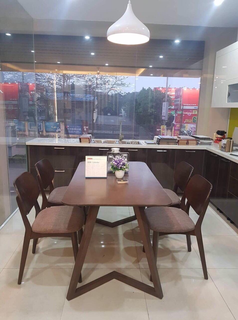 Bàn ăn với chất liệu mặt gỗ MDF phủ veneer , chân gỗ tự nhiên với một lớp đệm ngồi êm ái. Bạn sẽ cảm thấy thoải mái khi ngồi trên những mẫu ghế này. Đa dạng kích thước và mẫu mã sẽ giúp cho ngôi nhà của bạn đẹp hơn.