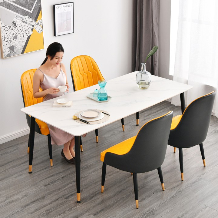 Bộ bàn ăn 4 ghế monet cao cấp sang trọng là dòng bàn ăn mặt đá sang trọng. Thiết kế mang phong cách hiện đại kết hợp giữa. Bàn ăn mặt đá và ghế Monet cao cấp. Khung bàn được làm từ thép mạ vàng PVD có độ bền cao, không bị bong hoen rỉ.