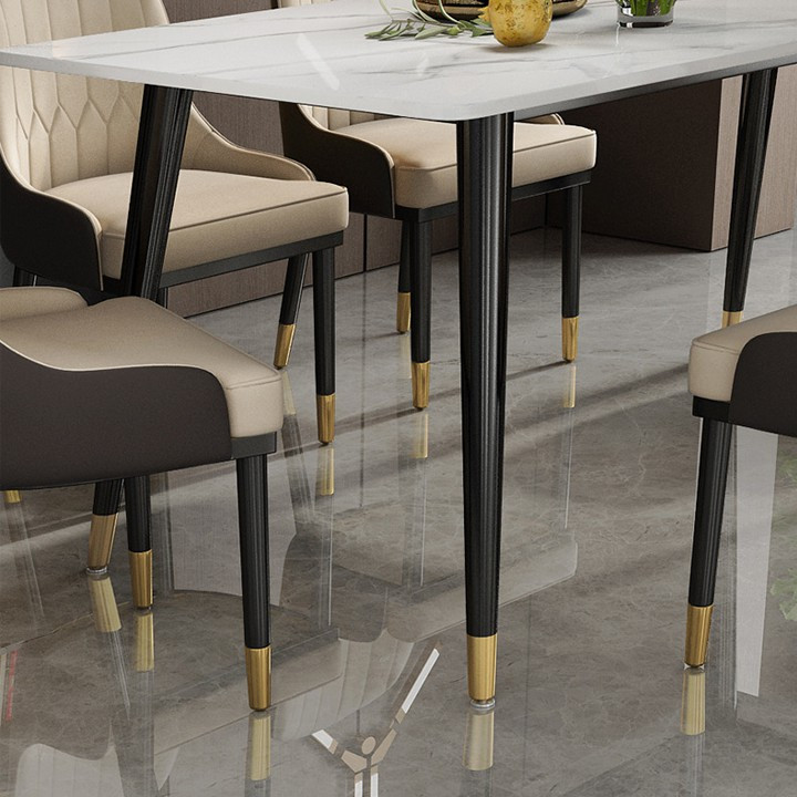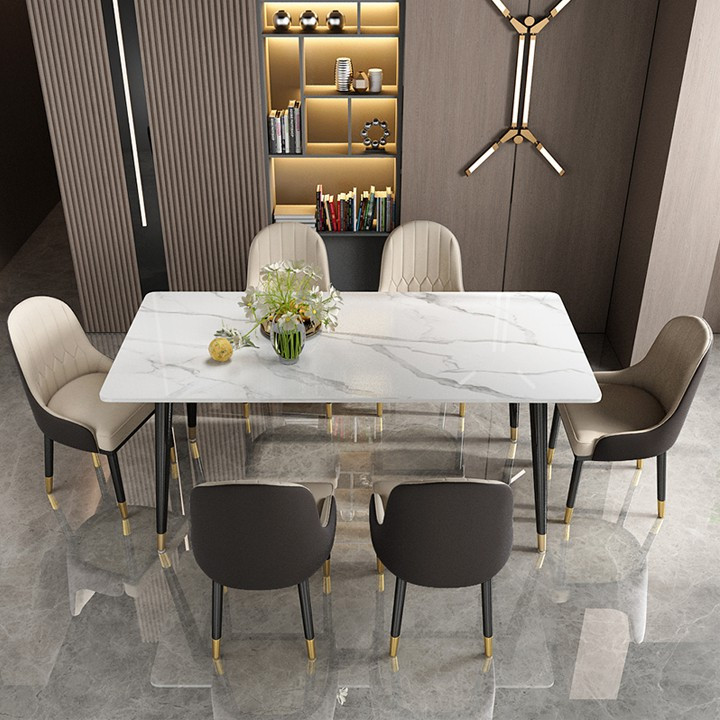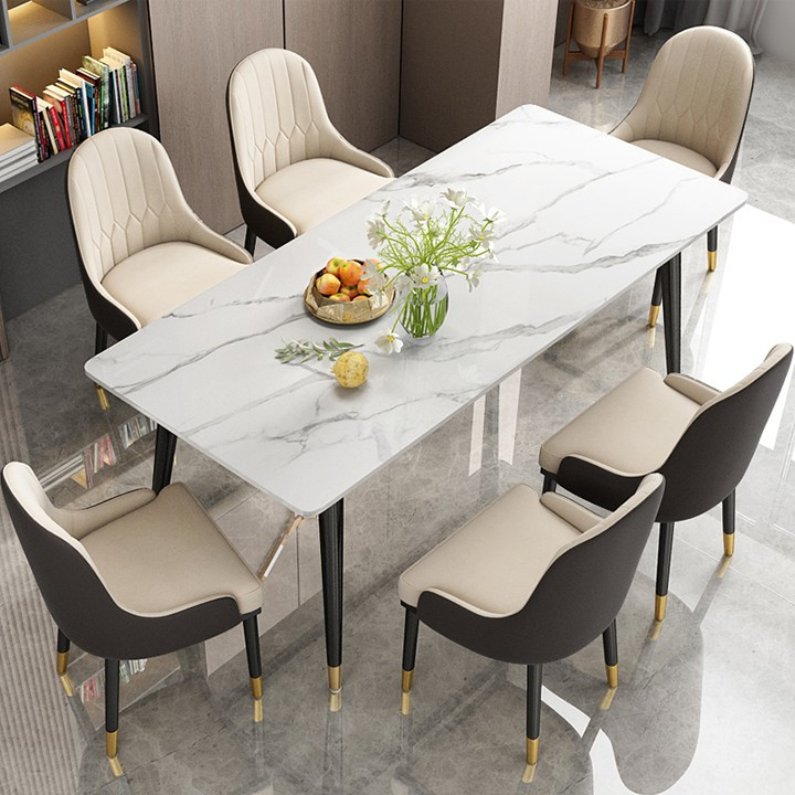 Bộ bàn ăn 6 ghế monet cao cấp sang trọng là dòng bàn ăn mặt đá sang trọng. Thiết kế mang phong cách hiện đại kết hợp giữa. Bàn ăn mặt đá và ghế Monet cao cấp. Khung bàn được làm từ thép mạ vàng PVD có độ bền cao, không bị bong hoen rỉ.