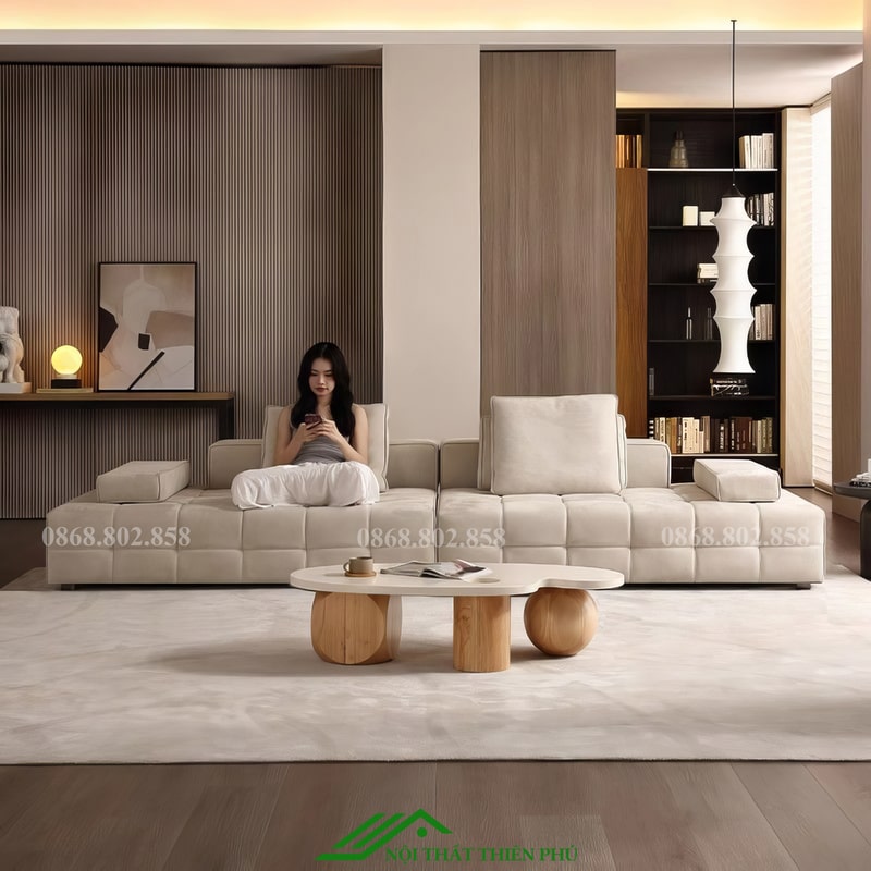 Ngoài ra, phần khung sofa được chế tác từ gỗ tự nhiên đã qua xử lý chống mối mọt và cong vênh, kết hợp với nệm mút D40 có độ đàn hồi cao, mang lại cảm giác êm ái nhưng không bị xẹp lún sau thời gian sử dụng. Đây chính là sự đầu tư dài hạn cho sự thoải mái và độ bền vượt thời gian.