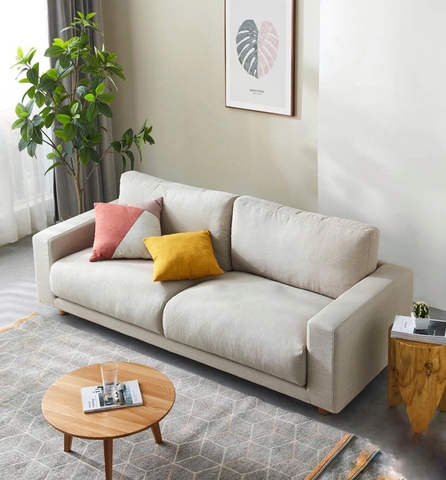 - Chất liệu: Vỏ bọc nỉ hiện đại, bền bỉ và chất lượng mang lại cảm giác mềm mại, êm ái kết hợp với khung ghế gỗ tự nhiên rất chắc chắn và vững chắc.