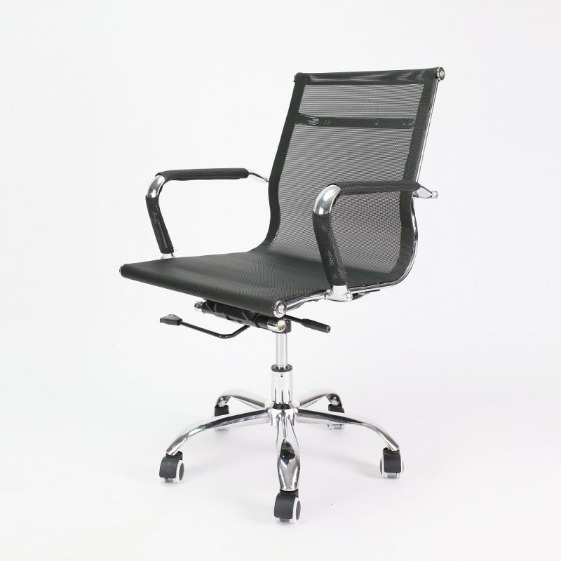 - Chất liệu: lưng lưới đen tạo cảm giác thoải mái và chân khung mạ Crom, bánh xe làm từ nhựa dễ dàng di chuyển