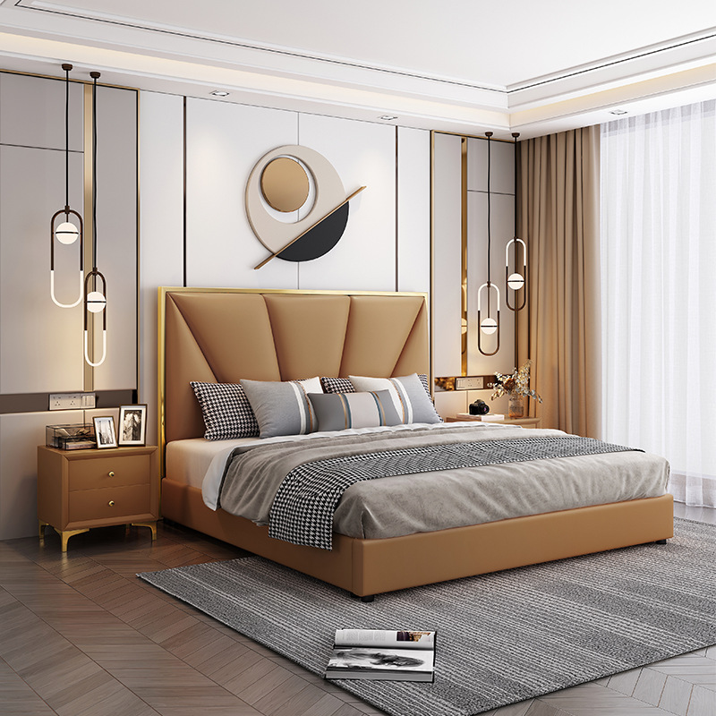 Giường Ngủ Đẹp Hiện Đại - BD 17 được thiết kế với đầu giường được gắn nệm và được bọc da ( bọc vải) cao cấp, cùng với đó đầu giường được trang trí bởi viền mạ vàng, tô lên điểm sáng làm nổi bậc cho sản phẩm, tạo nên sự đẳng cấp sang trọng cho người sở hữu.