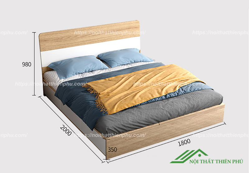 - Kích thước: Dài 180cm x Rộng 200cm x Cao đầu giường 98cm