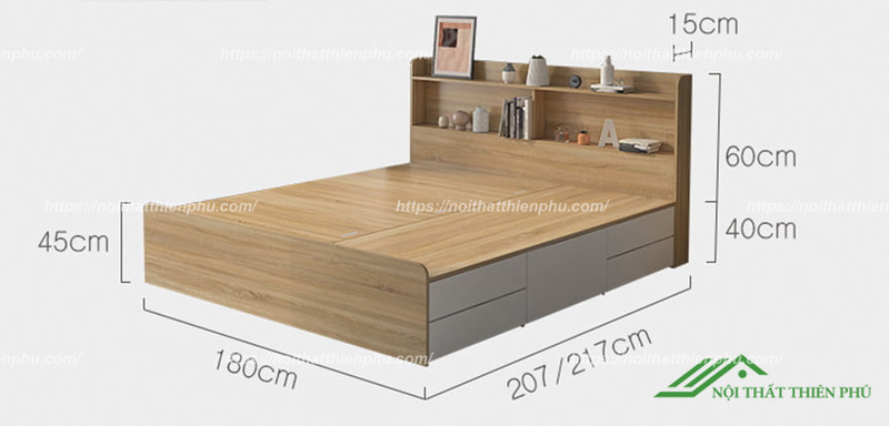 Kích thước giường ngủ gỗ nhiều ngăn kéo - GN 49