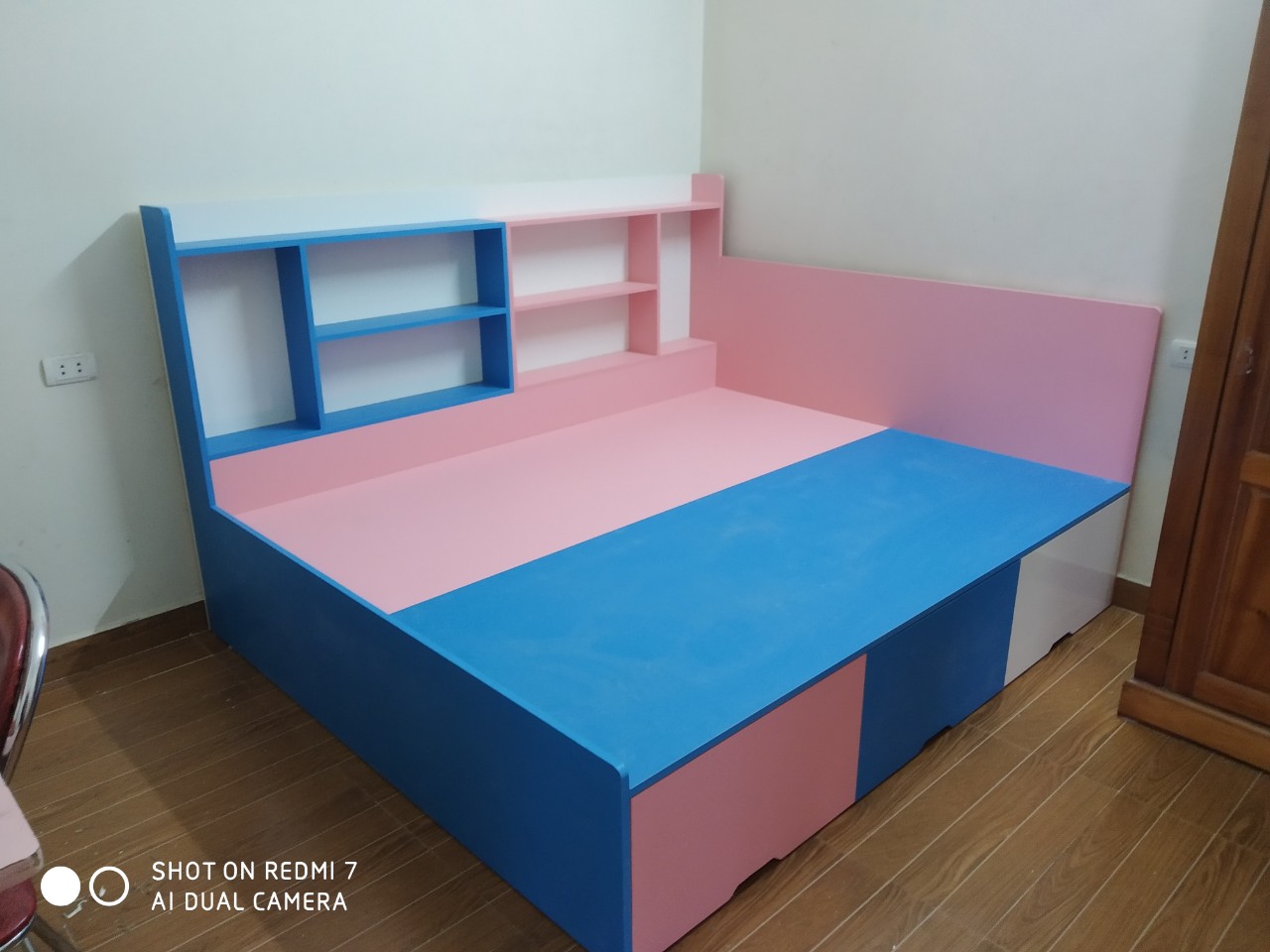Giường có 4 ngăn kéo . gỗ MDF chống xước được thiết kế theo kiểu giường bệt, hiện đại với bộ khung chắc chắn, dát phản tiện lợi, sử dụng được trong cả mùa đông lẫn mùa hè. Giường được thiết kế thêm kệ để đồ bên cạnh tiết kiệm được không gian, giúp bạn hoàn toàn thoải mái trong quá trình sử dụng sản phẩm.