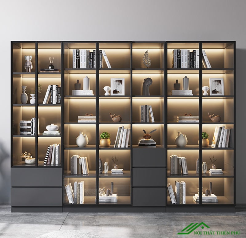- Đa năng: Sản phẩm không chỉ dùng để lưu trữ sách mà còn là nơi trưng bày các vật dụng trang trí, bộ sưu tập hoặc tài liệu văn phòng.