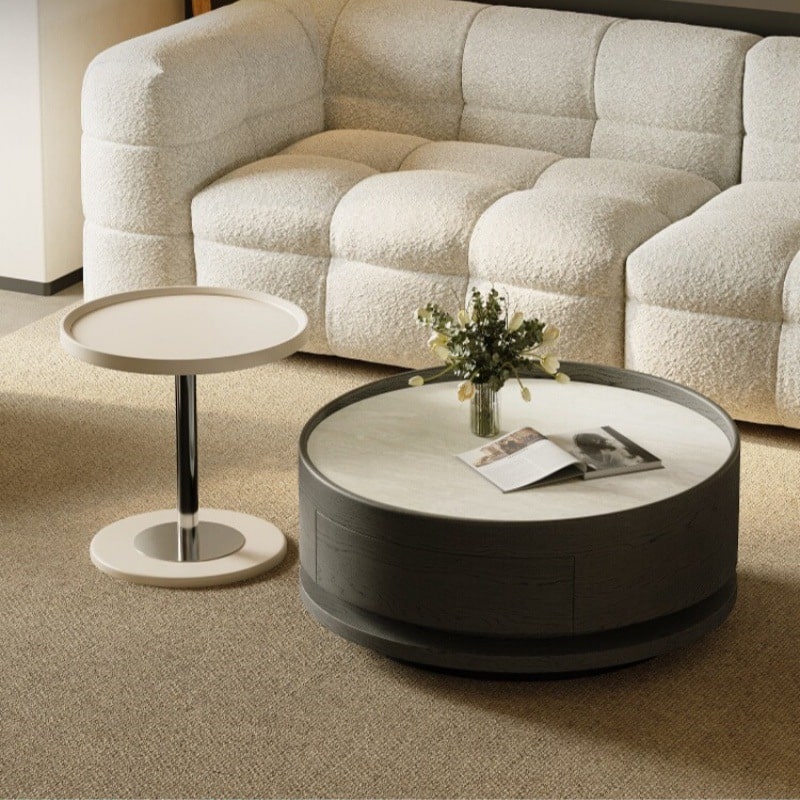 Mẫu bàn trà hình tròn phòng khách - BT 90 hiện đại kết hớp 2 bàn