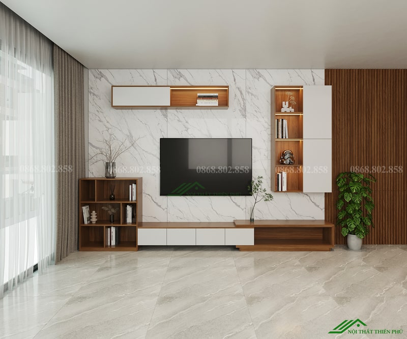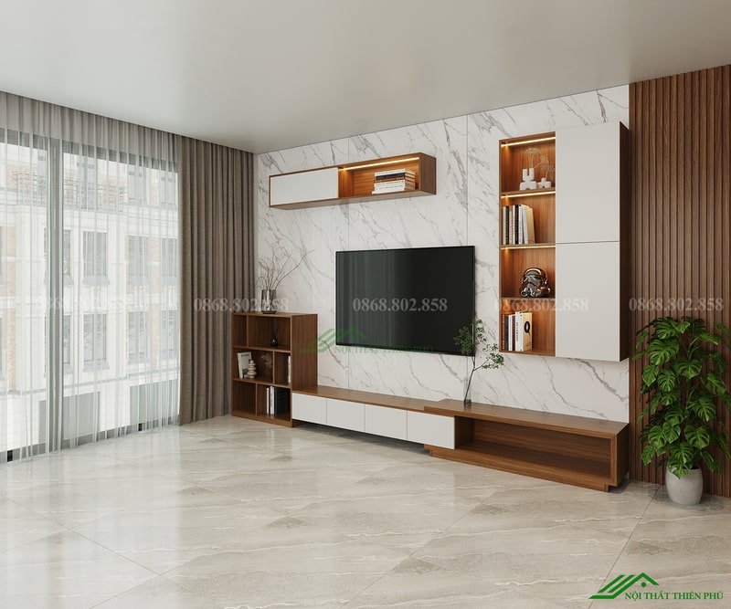 Một trong những điểm cộng lớn của TV 53 là sử dụng gỗ công nghiệp MDF hoặc MFC phủ melamine, được xử lý chống ẩm, hạn chế cong vênh, mối mọt. Đây là loại vật liệu phổ thông nhưng đã được kiểm chứng về độ bền, tính ổn định và thân thiện với môi trường. Gỗ công nghiệp không chỉ có tuổi thọ lâu dài mà còn có khả năng giữ màu tốt, dễ vệ sinh, phù hợp với khí hậu nóng ẩm như ở Việt Nam. Với TV 53, người dùng có thể yên tâm về chất lượng mà không cần bỏ ra chi phí quá lớn.