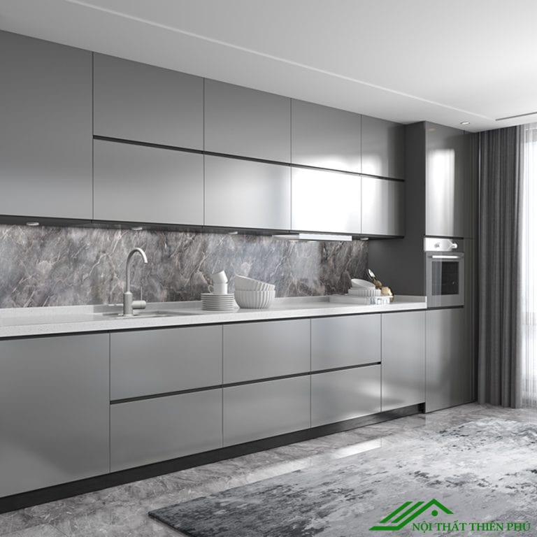 Mẫu tủ bếp đẹp - TB 15 màu xám tro sang trọng