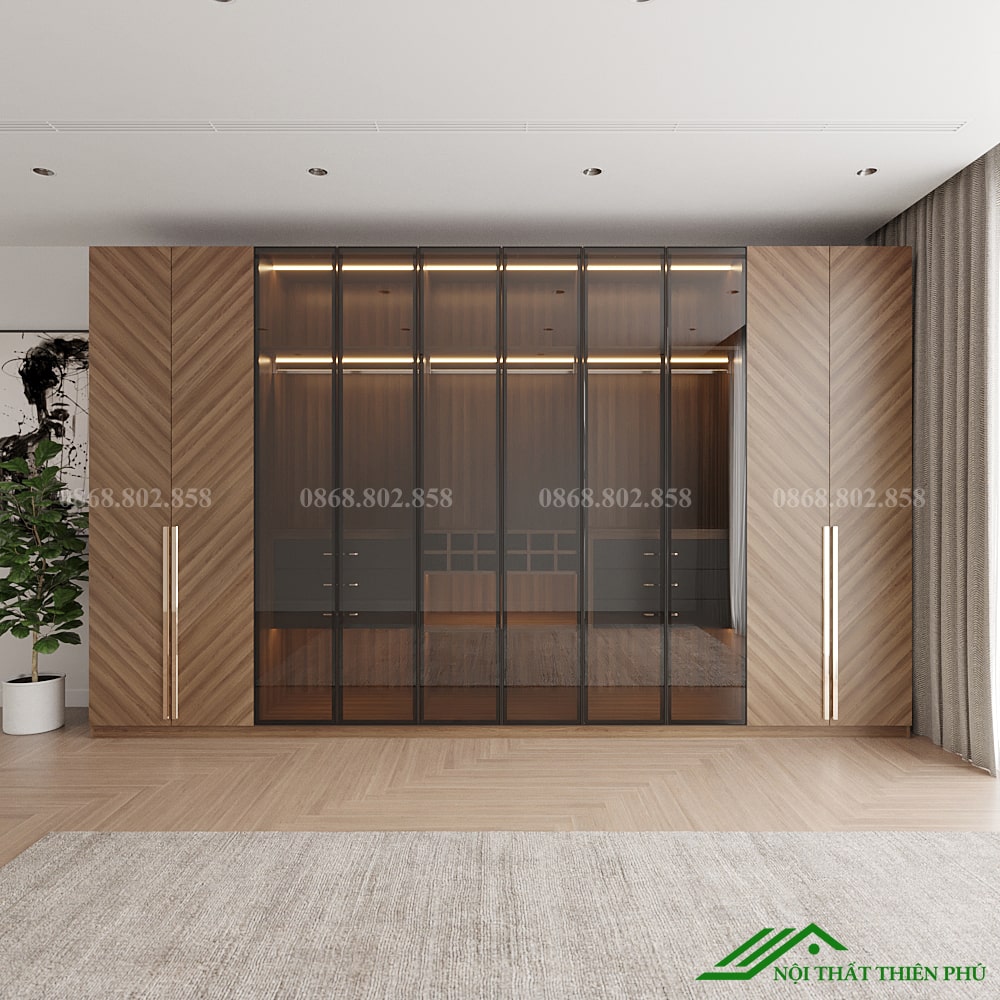 Mẫu tủ quần áo cánh kính đơn giản - TK 14 từ Nội Thất Thiên Phú là một sản phẩm nổi bật nhờ sự kết hợp linh hoạt giữa cánh gỗ và cánh kính, mang lại sự hài hòa và tinh tế cho không gian nội thất. Thiết kế này không chỉ tạo ra vẻ đẹp hiện đại mà còn tăng thêm tính linh hoạt trong bố cục của tủ, giúp người dùng dễ dàng sắp xếp và tổ chức quần áo, phụ kiện một cách khoa học. Sự kết hợp giữa hai chất liệu này tạo ra một sản phẩm không chỉ đa năng mà còn có thẩm mỹ cao, phù hợp với nhiều phong cách trang trí nội thất.