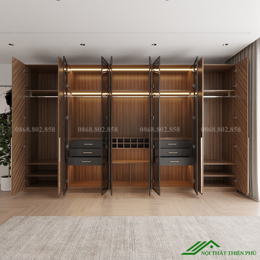 Bố cục của tủ được làm nhiều ngăn, thuận tiện cho việc chia đồ
