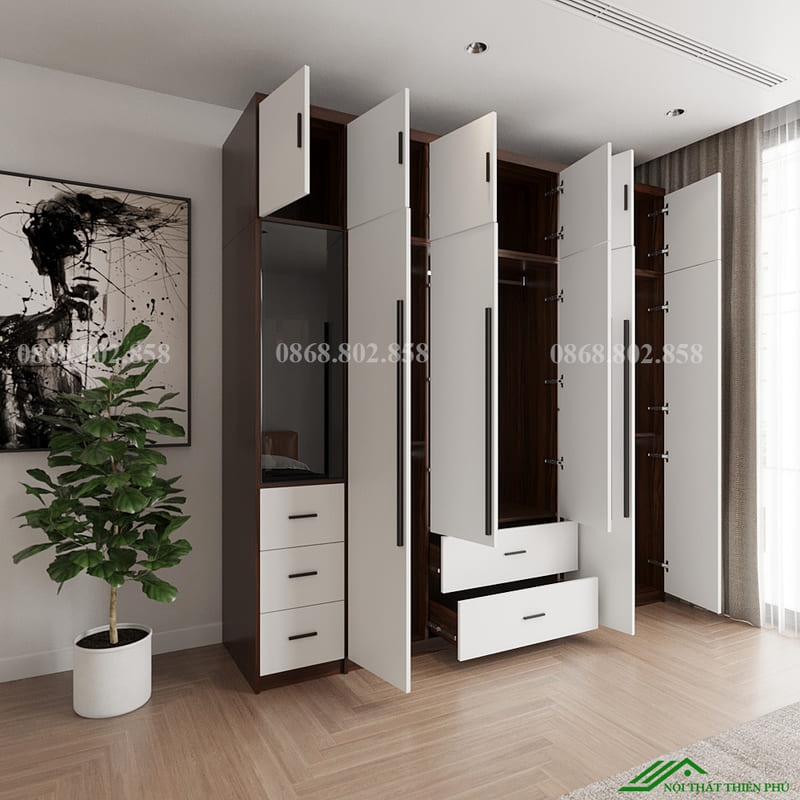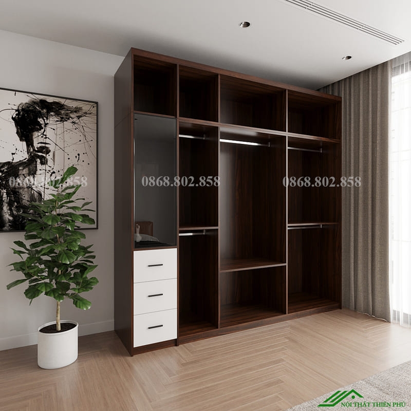 Mẫu tủ quần áo hiện đại QA 84 tại Nội Thất Thiên Phú là lựa chọn lý tưởng cho không gian sống tiện nghi và thẩm mỹ. Với thiết kế tinh gọn, đường nét vuông vức, sản phẩm mang đến vẻ đẹp trẻ trung, hiện đại nhưng vẫn đảm bảo sự sang trọng và bền bỉ. Tủ được sản xuất từ chất liệu cao cấp, màu sắc hài hòa, dễ dàng kết hợp với nhiều phong cách nội thất khác nhau. Không chỉ tối ưu công năng lưu trữ, mẫu QA 84 còn góp phần nâng tầm không gian phòng ngủ, đem lại sự gọn gàng và thoải mái cho gia chủ.