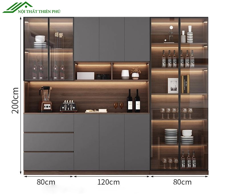 Kích thước mẫu Mẫu tủ rượu sang trọng cho phòng khách - TR 22 hiện đại