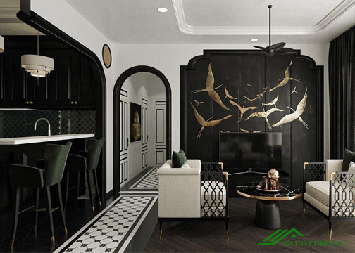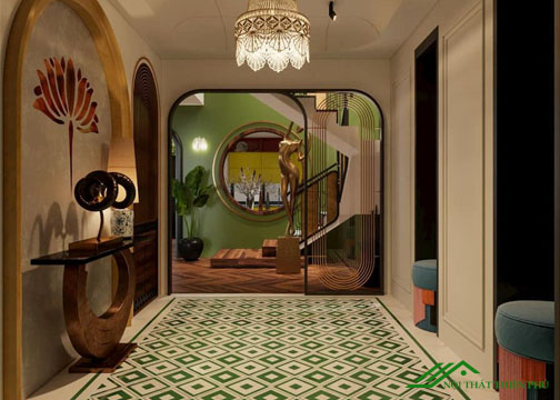 Gạch nung, gạch bông thường được sử dụng để lát sàn trong phong cách nội thất Đông Dương nhằm tôn nên sự tinh tế, sang trọng cho không gian.