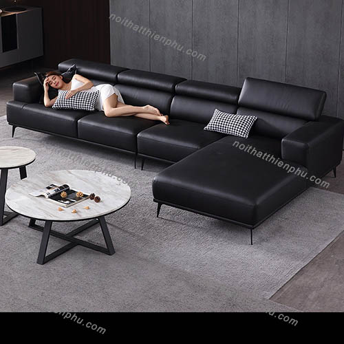 Mẫu sofa bọc da cao cấp này có thiết kế sang trọng, bền đẹp phù hợp với mọi không gian phòng khách của các gia đình. Kiểu dáng chữ L, kích thước lớn mang đến sự bề thế, đẳng cấp cho không gian phòng khách.