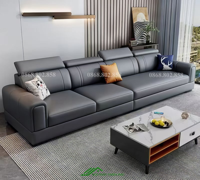 Một yếu tố làm nên đẳng cấp cho mẫu sofa này chính là chất liệu da cao cấp hoặc nỉ cao cấp (tùy phiên bản), kết hợp cùng khung gỗ tự nhiên đã qua xử lý chống mối mọt. Chất liệu da mang đến cảm giác sang trọng, dễ vệ sinh, trong khi chất liệu nỉ lại tạo sự ấm áp, thân thiện và mềm mại. Lớp đệm mút dày dặn với độ đàn hồi cao giúp ghế luôn êm ái, hạn chế tình trạng xẹp lún khi sử dụng lâu dài. Đặc biệt, phần lưng tựa được thiết kế dạng gối rời hoặc liền khối tùy chọn, vừa nâng đỡ tốt cho cột sống vừa dễ dàng vệ sinh, thay thế khi cần thiết.