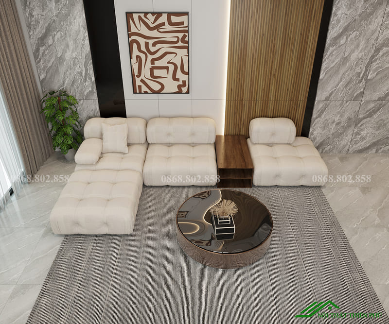 Sofa lông cừu góc màu trắng – SF 128 không chỉ là món đồ nội thất dùng để ngồi hay thư giãn, mà còn đóng vai trò quan trọng trong việc tạo nên vẻ đẹp cân đối và hài hòa cho không gian sống. Với thiết kế tinh tế và màu sắc trang nhã, sản phẩm dễ dàng trở thành điểm nhấn thẩm mỹ nổi bật trong phòng khách gia đình.