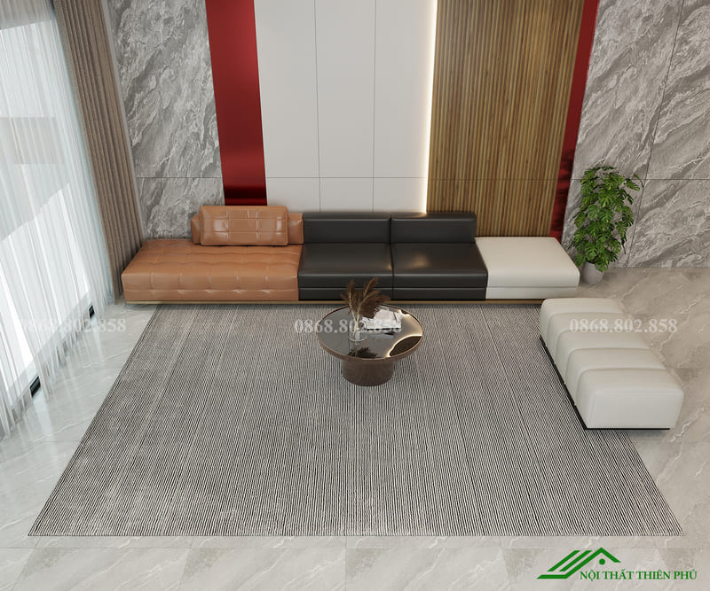 Bên cạnh đó, sự phối màu độc đáo là điểm nhấn không thể bỏ qua. Nội thất Thiên Phú đã khéo léo kết hợp ba gam màu hài hòa, vừa tạo nên sự nổi bật nhưng vẫn giữ được tính cân đối và dễ phối hợp với các đồ nội thất khác như bàn trà, kệ tivi hay thảm trải sàn. Đây là lựa chọn lý tưởng cho những ai muốn làm mới không gian sống mà không cần quá nhiều chi tiết cầu kỳ.