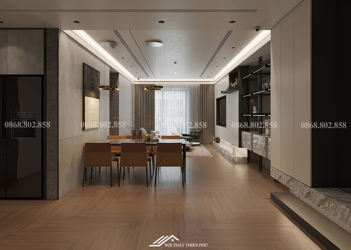Toàn bộ không gian nội thất, đồ nội thất đều được thực hiện bởi nội thất Thiên Phú