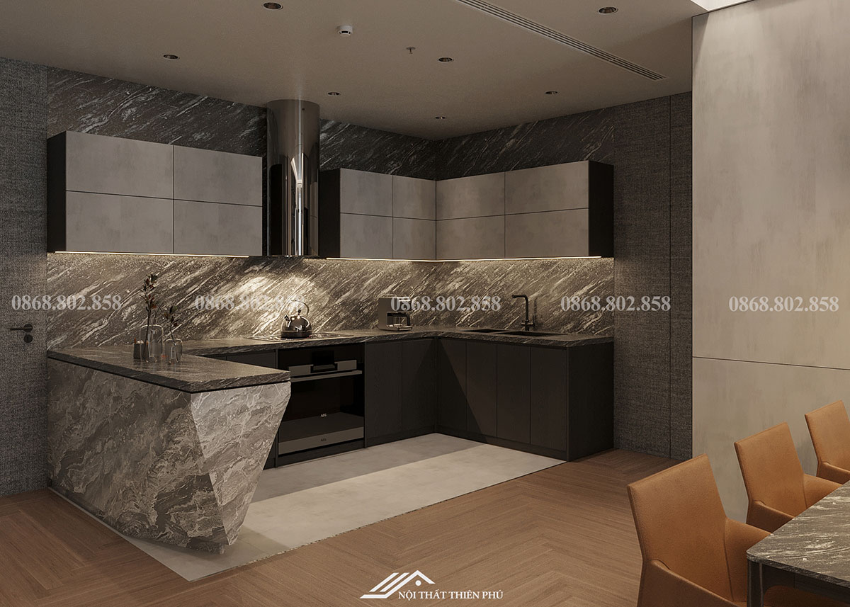 Không gian bếp với sự có mặt của vật liệu bằng đá tự nhiên