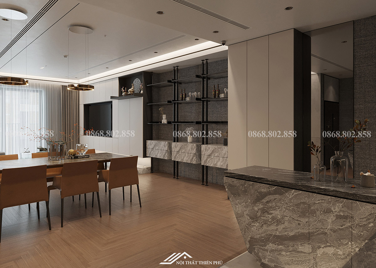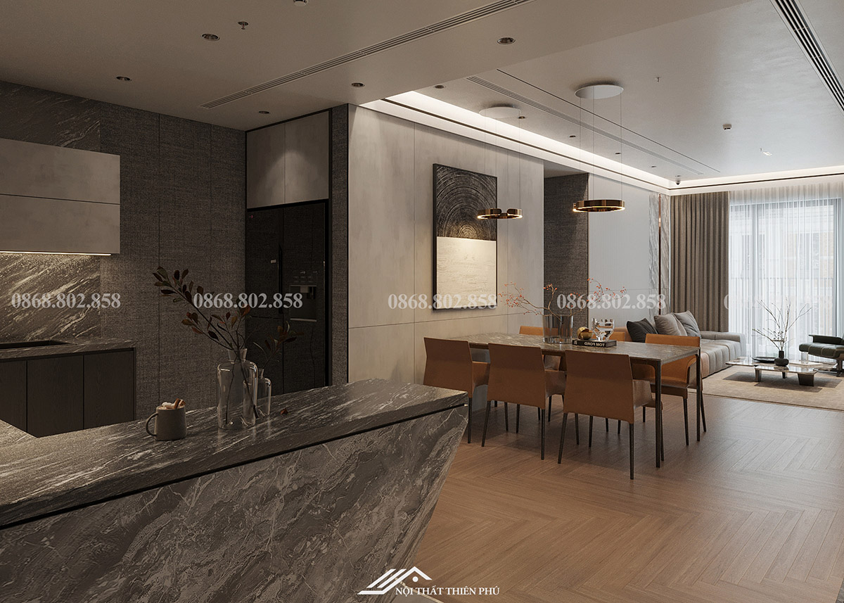 Thiết kế và thi công nội thất phòng phòng khách bếp căn hộ dự án The Matrix One