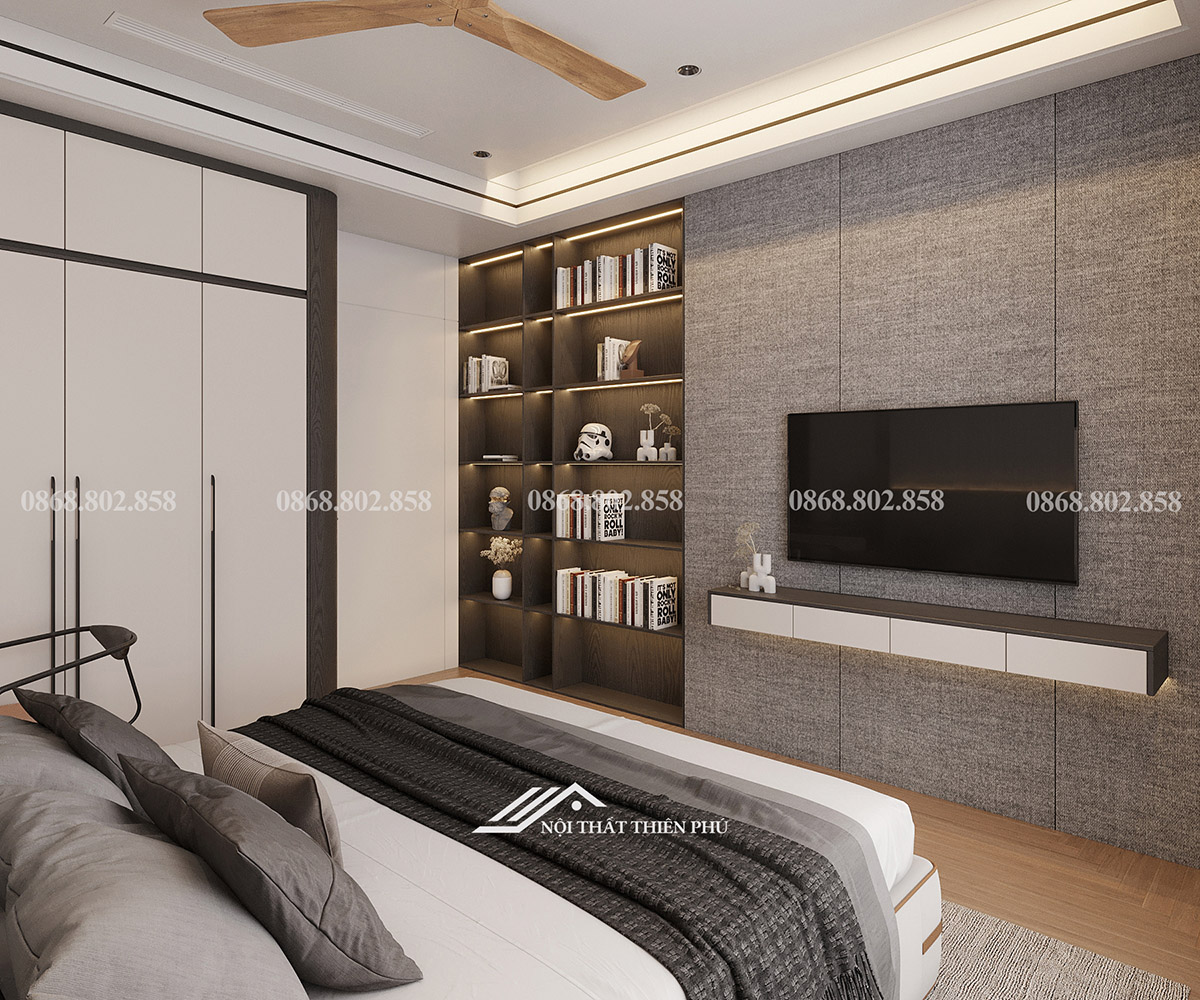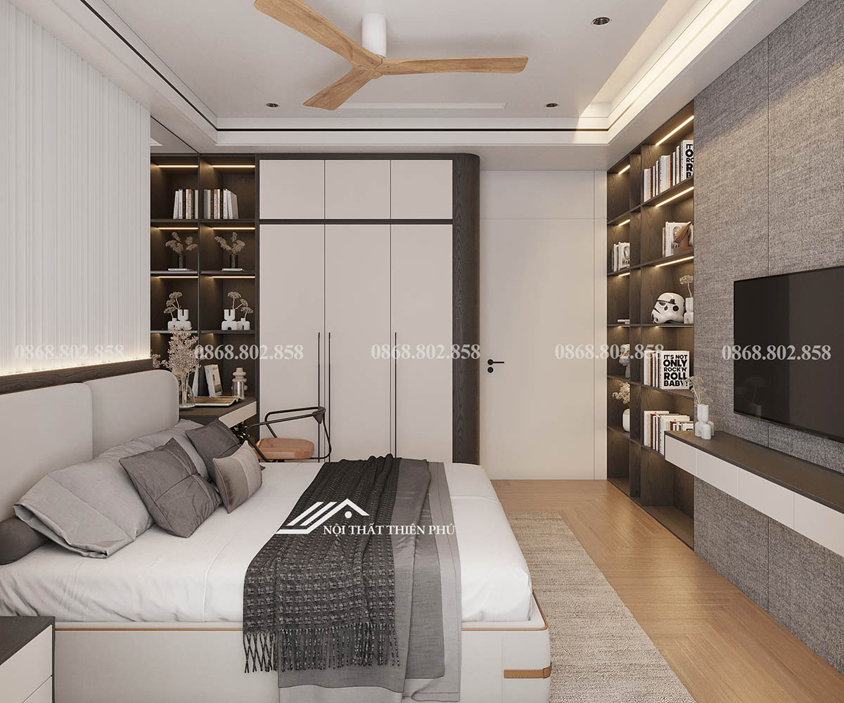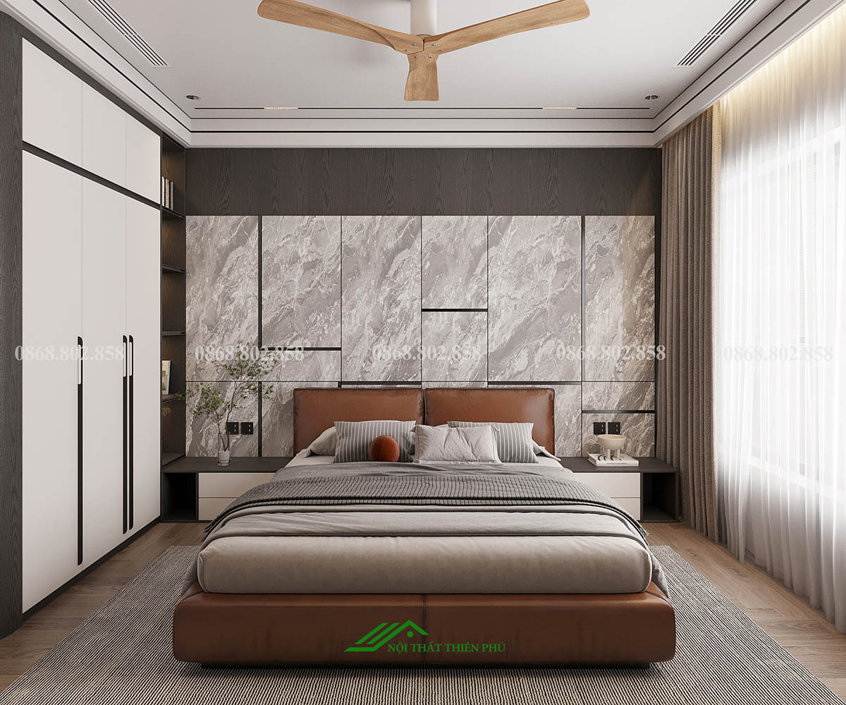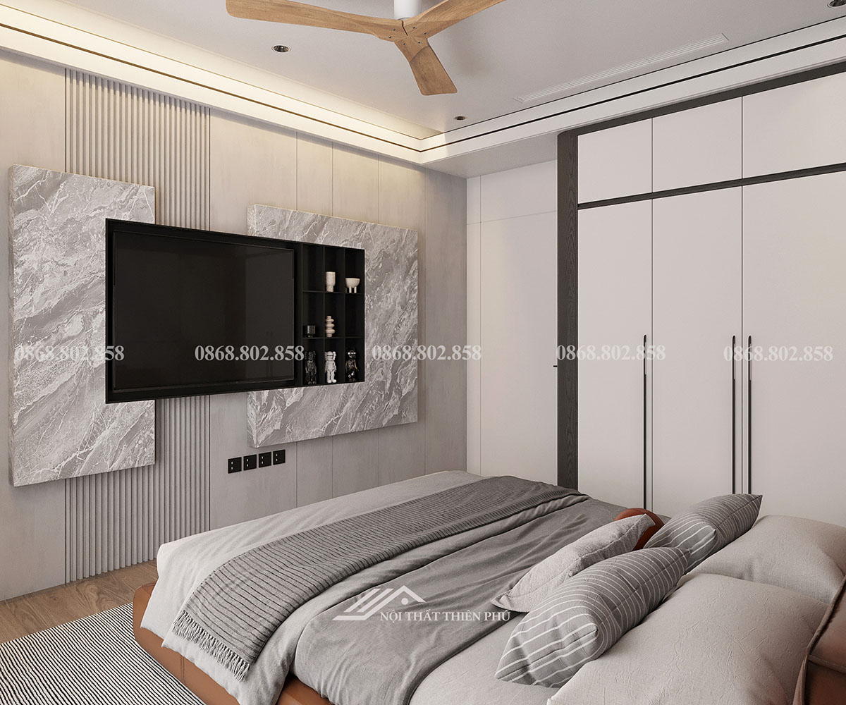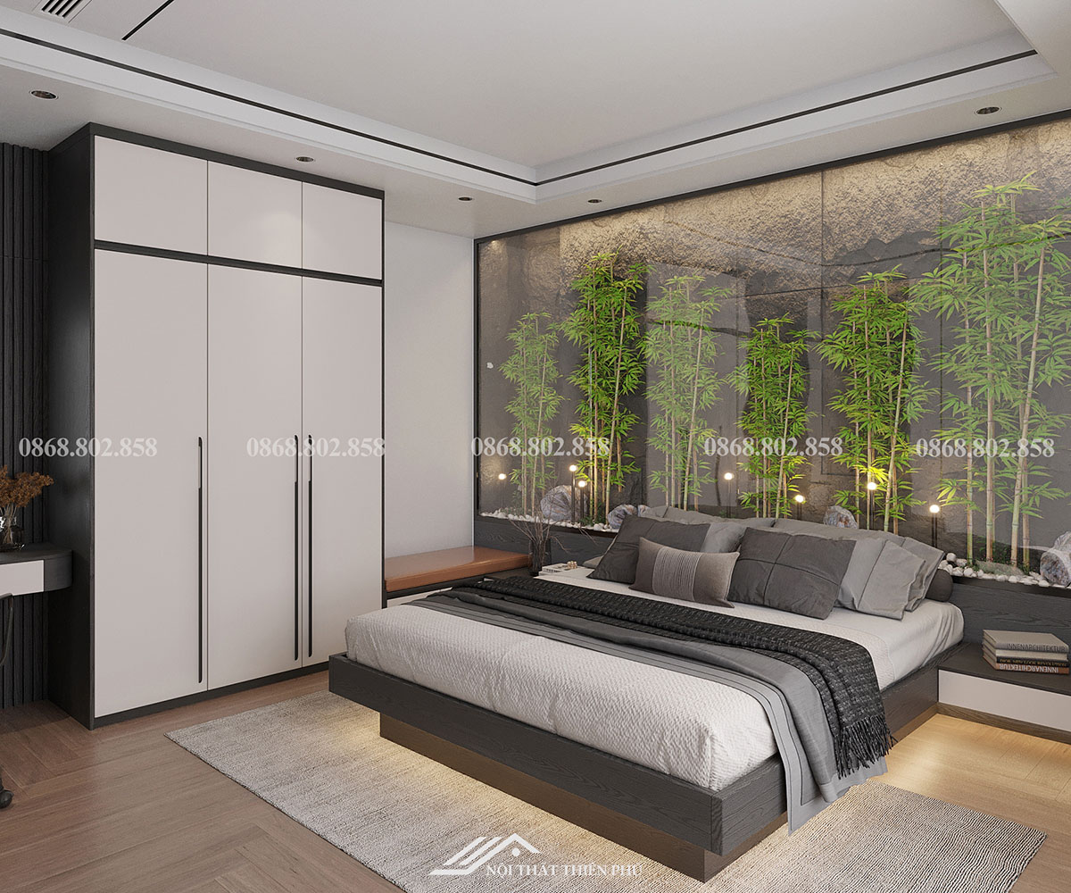 Tổng thể, không gian nội thất phòng ngủ của căn hộ dự án The Matrix One được thiết kế nhằm mang đến sự hài hòa giữa tính thẩm mỹ và công năng sử dụng, tạo nên một nơi nghỉ ngơi lý tưởng, hiện đại và sang trọng. Toàn bộ không gian nội thất của phòng ngủ dự án được thực hiện bởi nội thất Thiên Phú. Quý khách hàng có thể liên hệ trực tiếp với chúng tôi để được tư vấn và hướng dẫn tốt nhất.