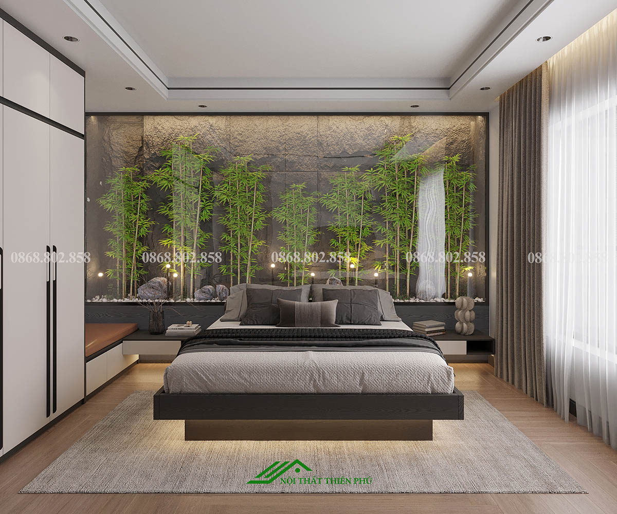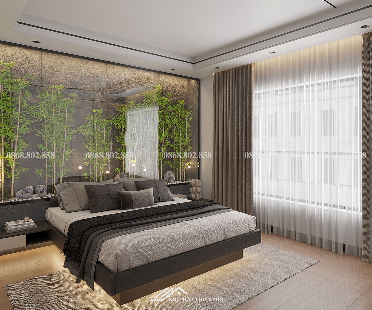 - Hiệu ứng thẩm mỹ: Không gian mở phía sau giường tạo nên một điểm nhấn đặc biệt, giúp phòng ngủ trông rộng rãi và thoáng đãng hơn.
