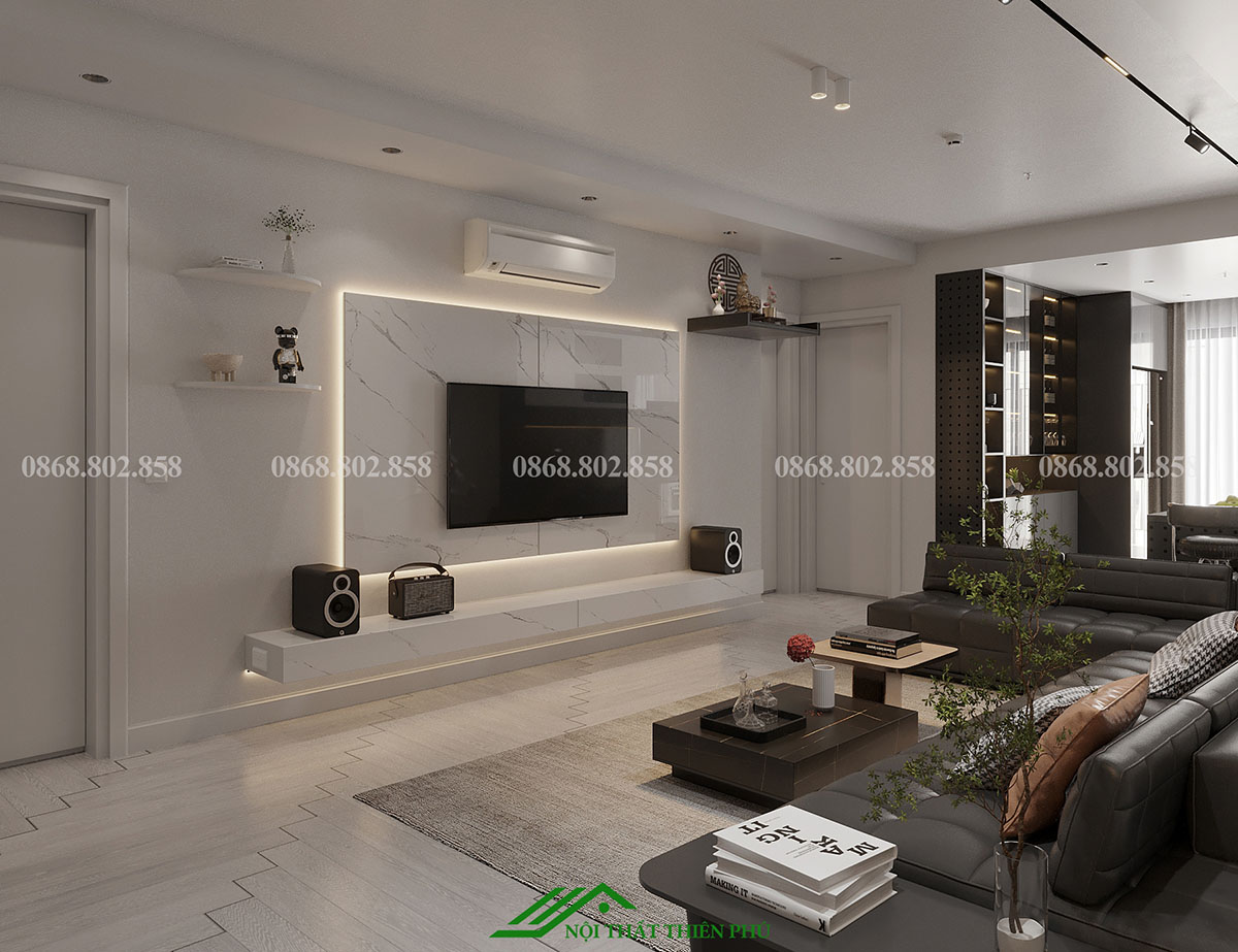 Thiết kế và thi công phòng khách bếp chung cư cao cấp nhà chú Văn Sỹ Hùng với phòng khách ấn tượng
