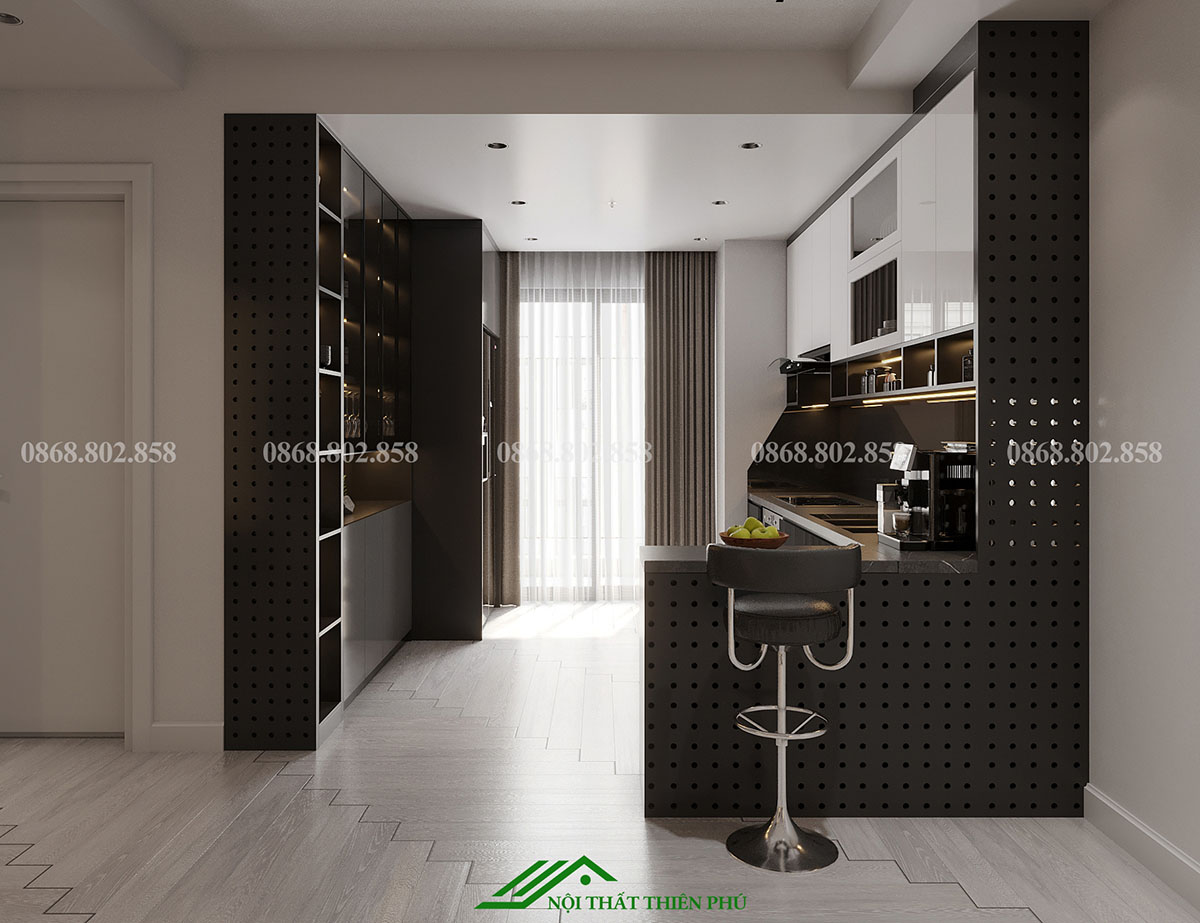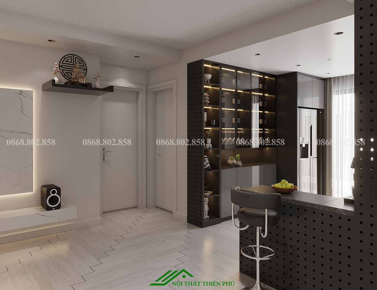 Thiết kế và thi công phòng khách bếp chung cư cao cấp nhà chú Văn Sỹ Hùng không gian quầy bar