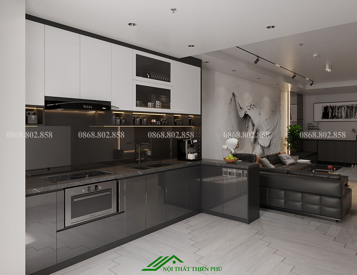 Thiết kế và thi công phòng khách bếp chung cư cao cấp nhà chú Văn Sỹ Hùng hiện đại