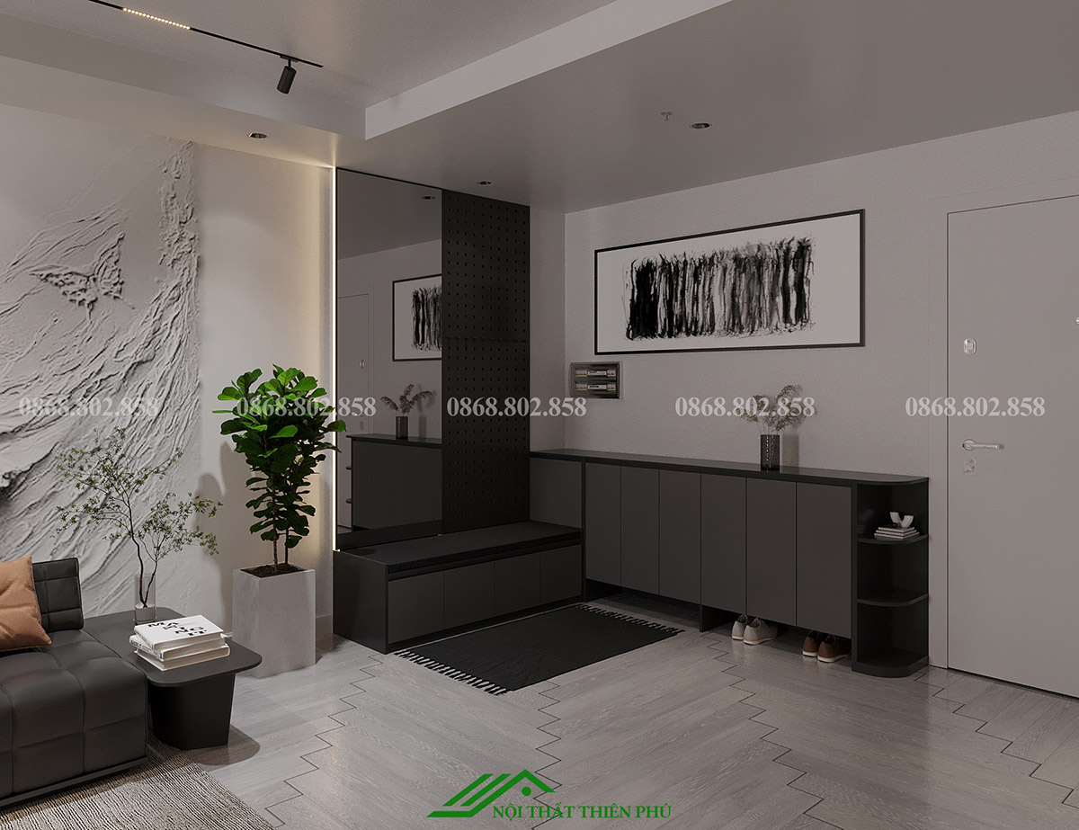 Không gian tủ giày, khu vực trước cửa phòng khách thuận tiện cho việc sử dụng