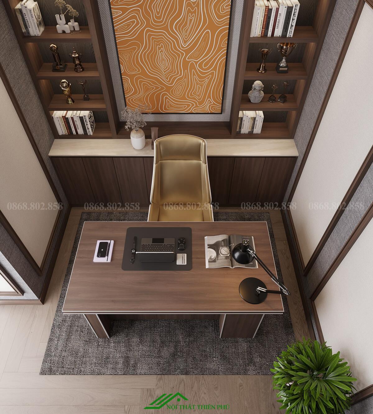 Nhìn chung, phòng làm việc tại căn hộ Times City Park 1 là sự kết hợp hài hòa giữa công năng và thẩm mỹ, tạo nên không gian lý tưởng để làm việc và học tập hiệu quả, phù hợp với nhu cầu của cư dân hiện đại.
