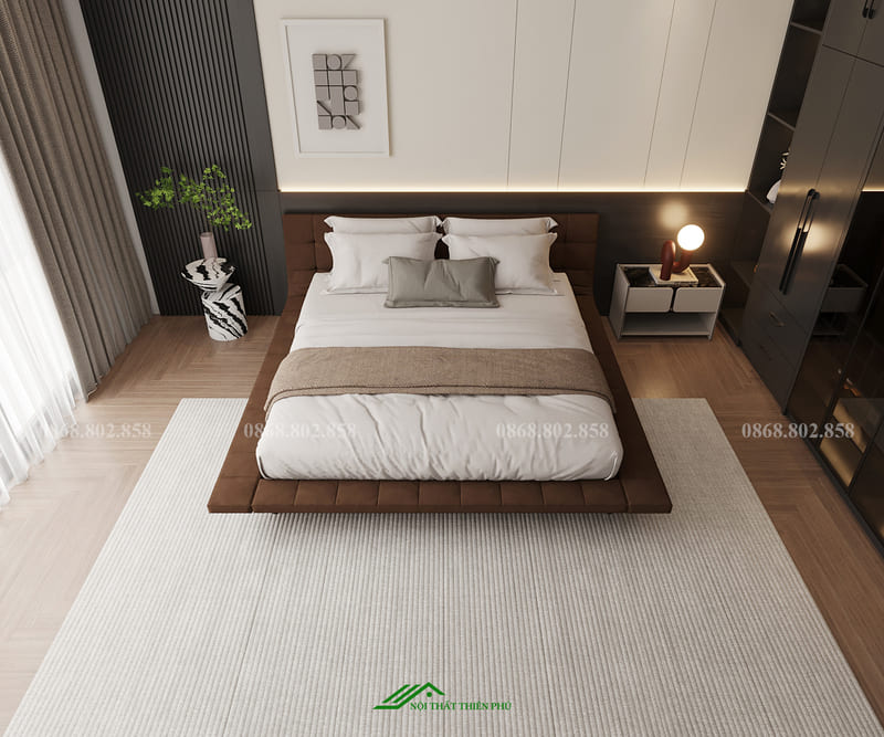 Với Thiết kế trọn gói phòng ngủ – TP 12, toàn bộ nội thất được Nội thất Thiên Phú trực tiếp thiết kế và sản xuất tại xưởng. Quy trình này giúp đảm bảo tính đồng bộ từ bản vẽ đến sản phẩm hoàn thiện, đồng thời kiểm soát tốt chất lượng vật liệu và độ hoàn thiện. Gia chủ cũng có thể linh hoạt điều chỉnh kích thước, chất liệu và màu sắc nội thất sao cho phù hợp với diện tích thực tế và ngân sách đầu tư.