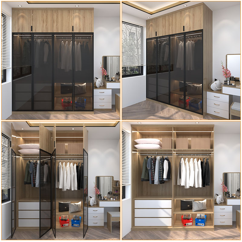 | Chất liệu | Gỗ MDF cốt xanh phủ melamine, cánh kính cường lực khung nhôm |
