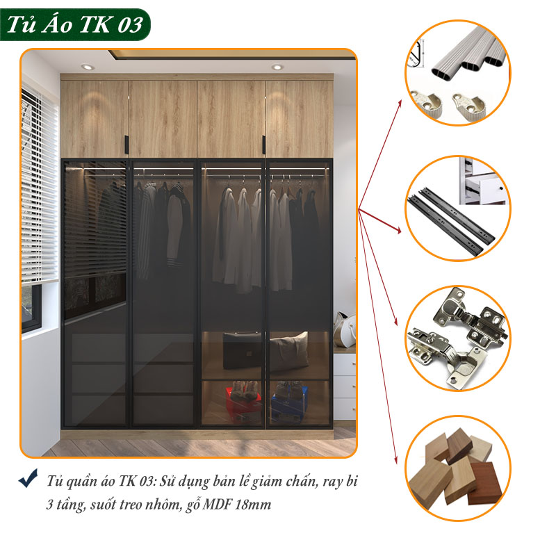 Mô tả chi tiết sản phẩm: Tủ Áo Cánh Kính HIện Đại - TK 03