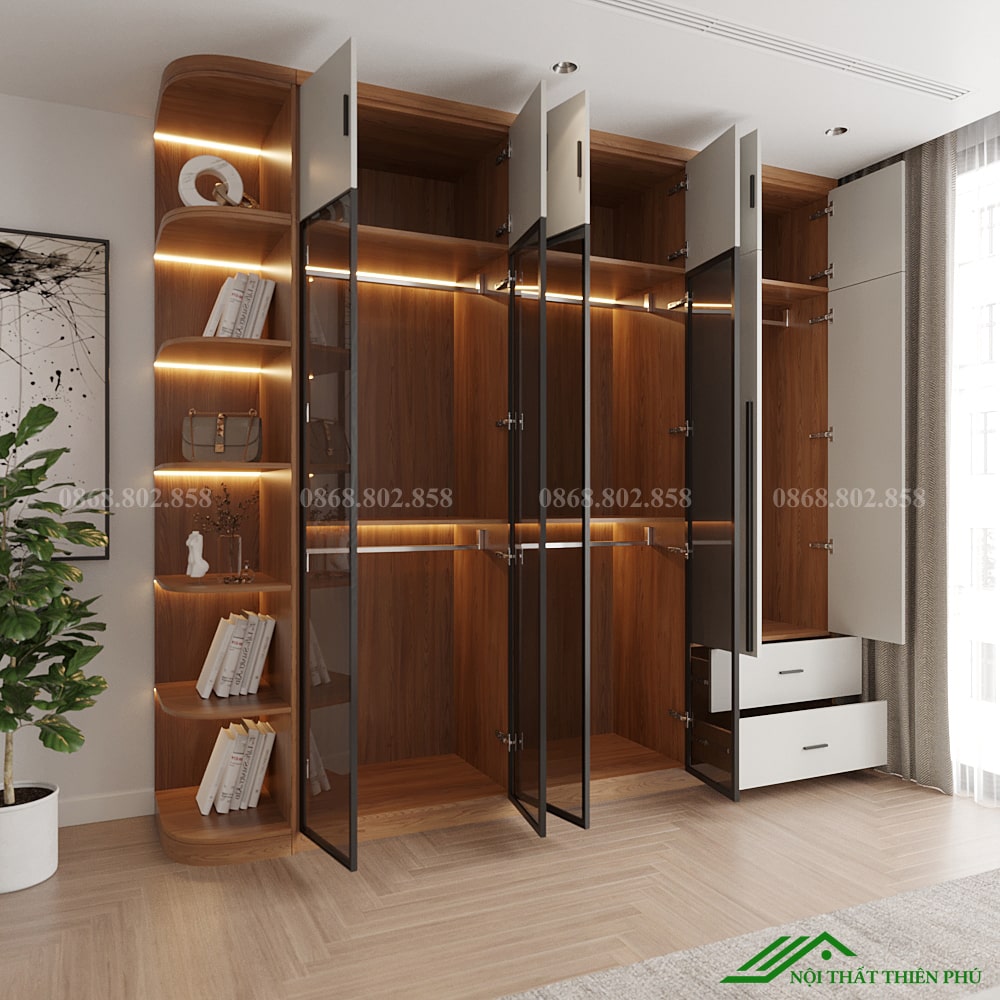 Tủ áo cánh kính hiện đại - TK 13 từ Nội Thất Thiên Phú là một sản phẩm nội thất nổi bật với thiết kế mix match độc đáo giữa cánh kính và cánh gỗ, mang đến sự mới mẻ và chiều sâu cho không gian sống. Sự kết hợp hài hòa giữa cánh kính trong suốt và cánh gỗ truyền thống không chỉ tạo nên vẻ đẹp thẩm mỹ mà còn giúp tủ TK 13 trở thành điểm nhấn ấn tượng trong phòng ngủ. Thiết kế này mang lại sự cân bằng hoàn hảo giữa sự hiện đại và ấm cúng, phù hợp với mọi phong cách trang trí nội thất.