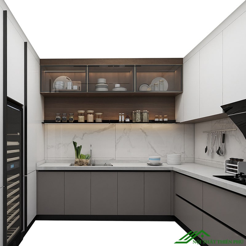 Tủ bếp chữ L gỗ công nghiệp hiện đại - TB 24 chính hãng được cung cấp bởi nội thất Thiên Phú