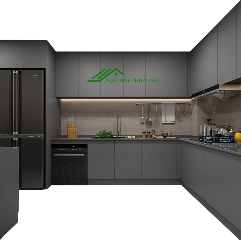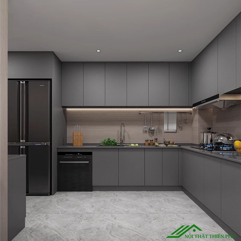 Tủ bếp chữ L - TB 25 màu xám hiện đại