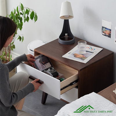 Tủ đầu giường thanh lịch không chỉ là sản phẩm nội thất tiện dụng mà còn mang vẻ đẹp riêng tạo lên điểm nhấn cho không gian sống của gia đình bạn. Tủ được làm từ công nghiệp phủ melamine mang vẻ đẹp hiện đại, đầu cá tính phù hợp với phong cách nội thất của hầu hết các gia đình Việt