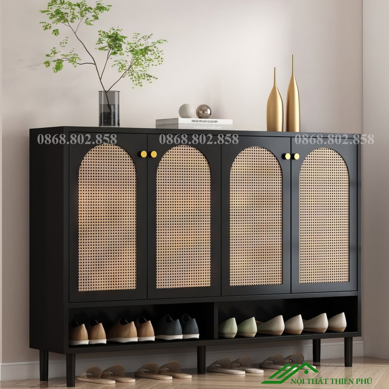 Tủ giày 4 cánh mây sang trọng - TG 50 màu đen
