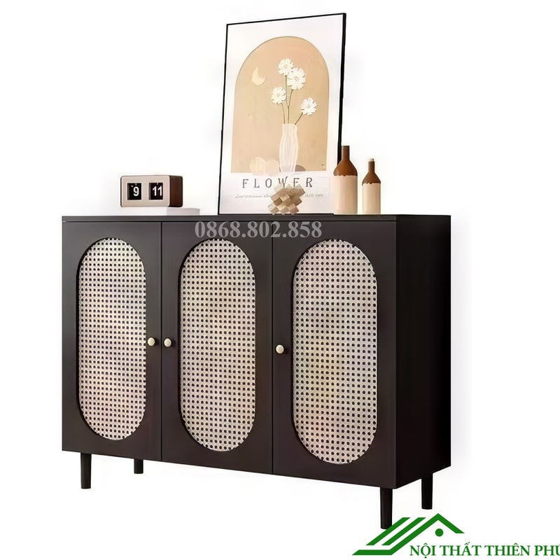 Khi không gian sống ngày càng được chú trọng đến sự hài hòa giữa công năng và thẩm mỹ, những món nội thất mang phong cách tự nhiên, tinh tế như tủ giày 4 cánh mây sang trọng - TG 50 trở thành lựa chọn yêu thích của nhiều gia đình hiện đại. Sản phẩm nổi bật với thiết kế cân đối, bề thế, kết hợp hoàn hảo giữa chất liệu gỗ tự nhiên và cánh mây đan thủ công, mang đến vẻ đẹp mộc mạc nhưng đầy đẳng cấp. Không chỉ là nơi lưu trữ giày dép gọn gàng, TG 50 còn là điểm nhấn trang trí tinh tế, góp phần nâng tầm thẩm mỹ cho lối vào hay hành lang của ngôi nhà.