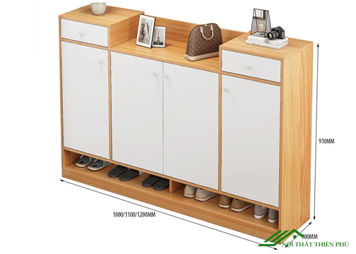 Tủ có thiết kế hiện đại, không gian lưu trữ lớn giúp, có nhiều ngăn và kệ để đồ đa năng, có thể để được nhiều giày giép của cả gia đình và đồ trang trí thêm cho tủ đẹp hơn.