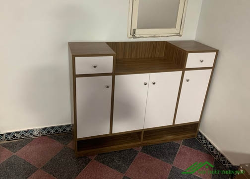 Tủ được làm bằng gỗ công nghiệp MDF phủ melamine đẹp mắt và có khả năng chống thấm nước, chống trầy xước tốt.