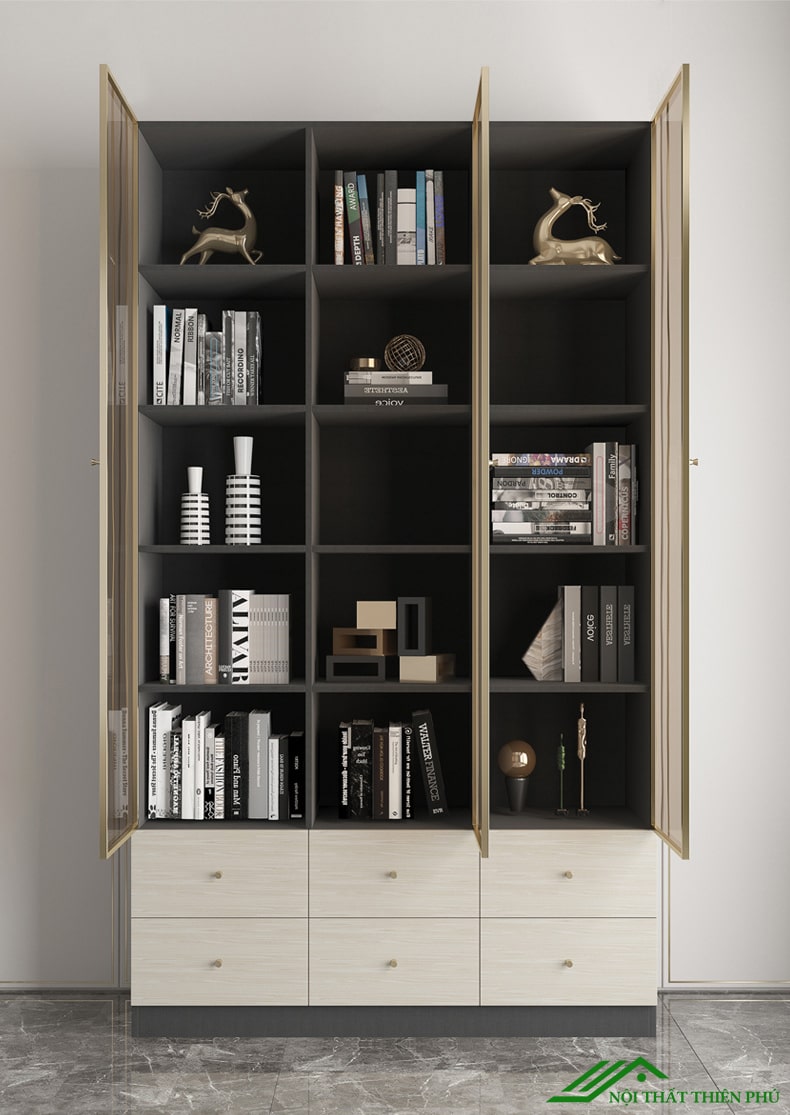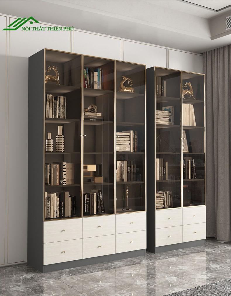 Tủ phòng khách cánh kính - TR 06 phù hợp với cả không gian phòng làm việc, phòng khách