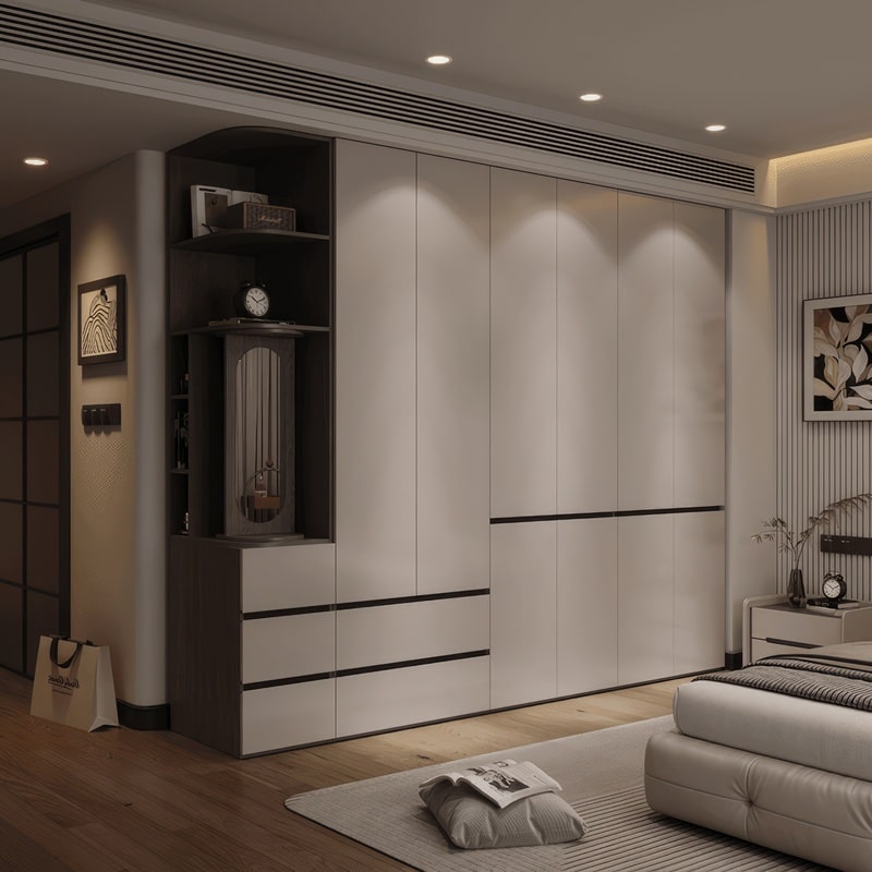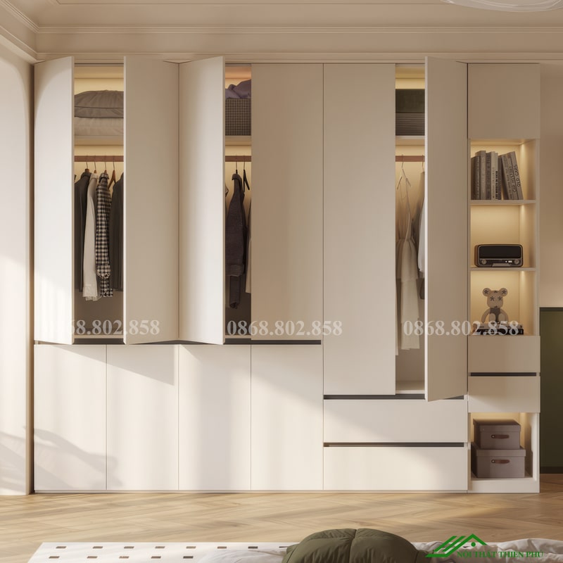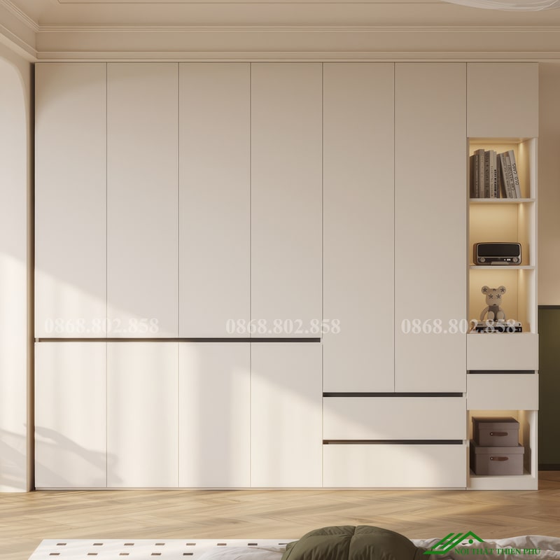 Một ưu điểm lớn khác chính là sự linh hoạt trong thiết kế kích thước và màu sắc. Nhờ được sản xuất từ gỗ công nghiệp, QA 77 dễ dàng tùy biến về kích thước để phù hợp với từng không gian phòng ngủ – từ những căn hộ nhỏ đến các phòng ngủ lớn hơn. Màu sắc đa dạng từ trắng, xám, nâu gỗ đến các gam màu trung tính hiện đại giúp tủ dễ dàng phối hợp với các phong cách nội thất như Scandinavian, Minimalist hay Japandi.